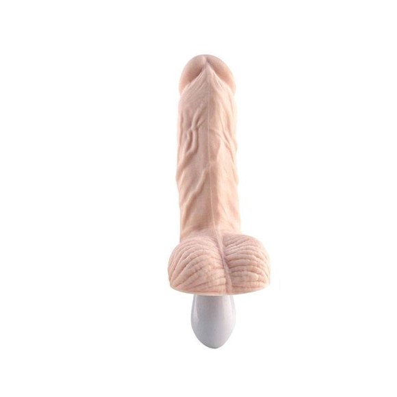 Pênis realístico recarregável com glande pequena e escroto. Possui 10 modos de vibração.