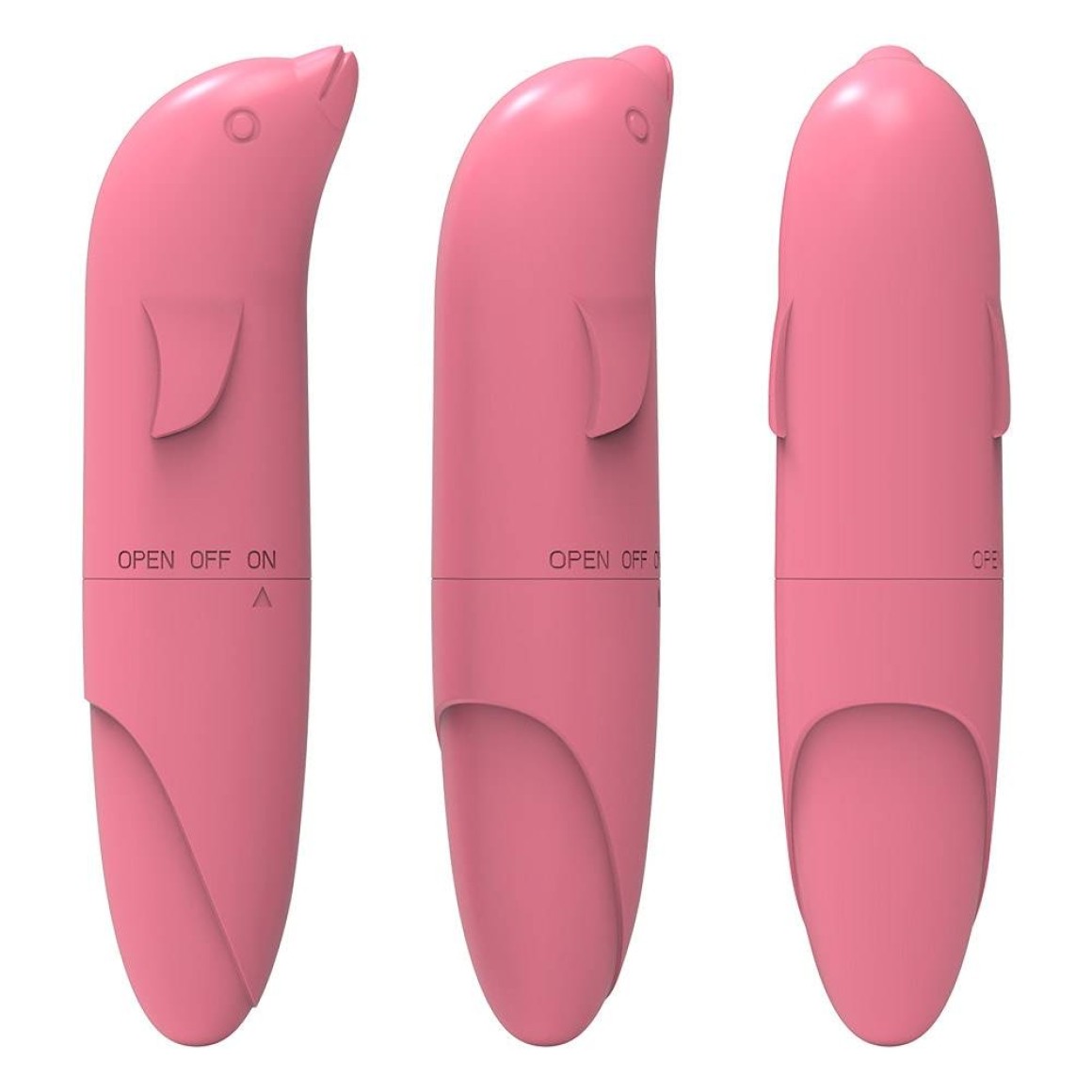 Vibrador Ponto G em formato de golfinho em ABS, super resistente, ponta levemente curvada.