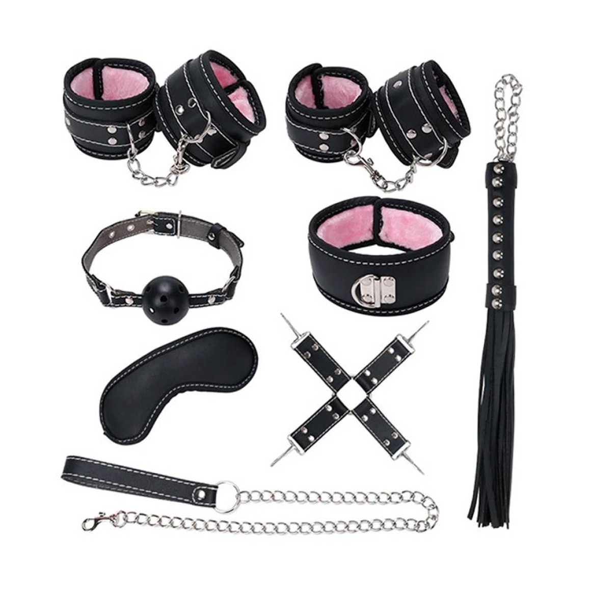 Kit para sadomasoquismo 8 peças é perfeito para pessoas que amam o mundo BDSM, feita de alta qualidade, confortável de usar e com comprimento ajustável para diferentes necessidades.