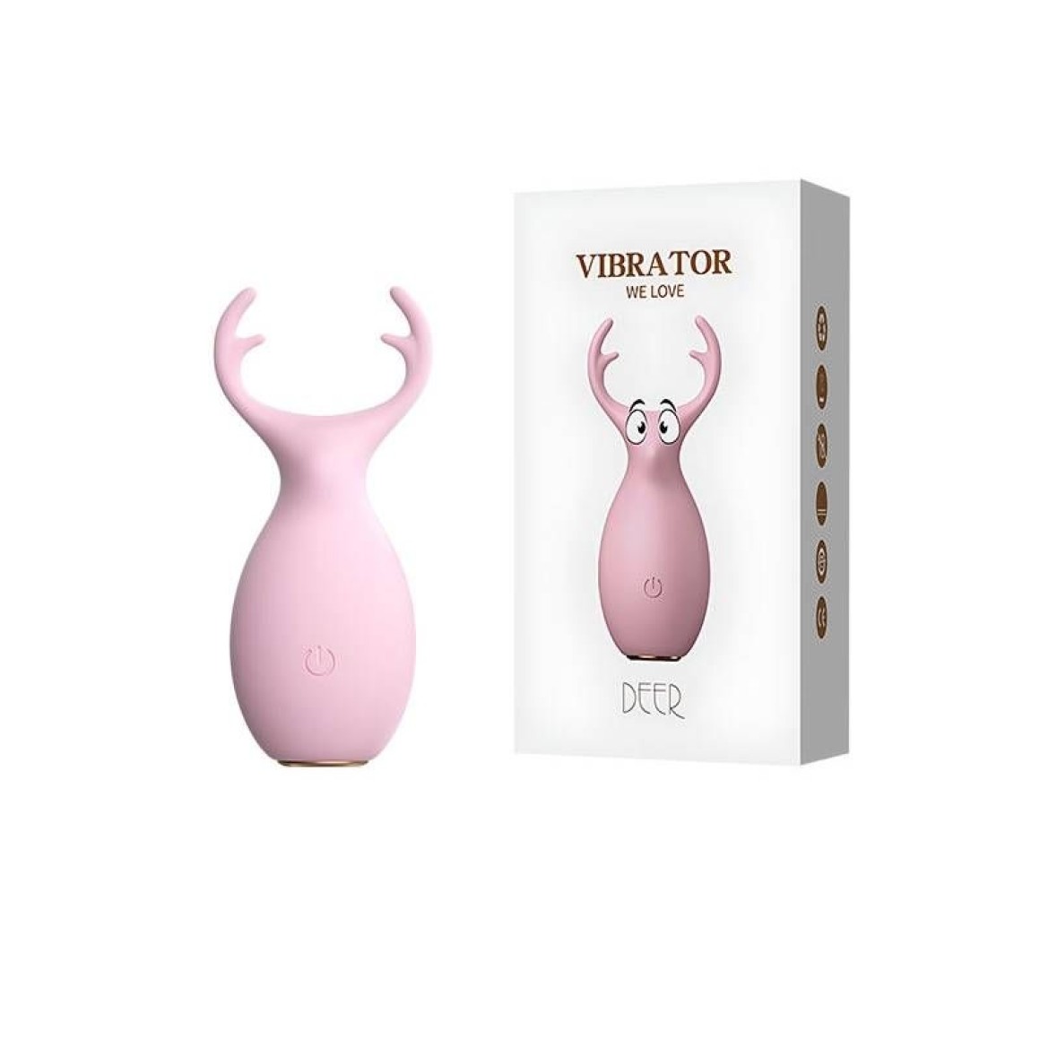 Mini vibrador recarregável formato alce. Possui 10 modos de vibração.
