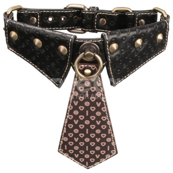 A gola possui um estilo único de gola de camisa, adicionando um toque de elegância sofisticada para seus momentos privados. Esta gola continua com uma gravata de couro sintético marrom embelezada com detalhes exclusivos da marca, destacando sua aparência elegante e única.