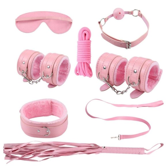 Conjunto completo para práticas de BDSM e bondage, ideal para casais que desejam explorar imobilização, controle e novas sensações. Inclui algemas, tornozeleiras, coleira com guia, venda, mordaça, chicote e corda, todos confeccionados em couro sintético resistente e metal, garantindo durabilidade, conforto e segurança.