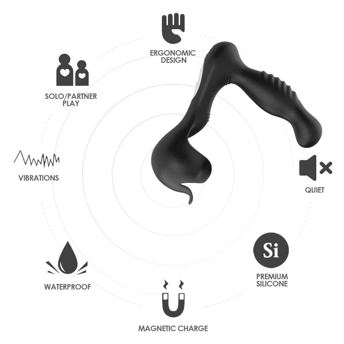 Estimulador foi projetado para se encaixar perfeitamente na região anal,possui 9 modos de vibração e 3 modos de rotação.