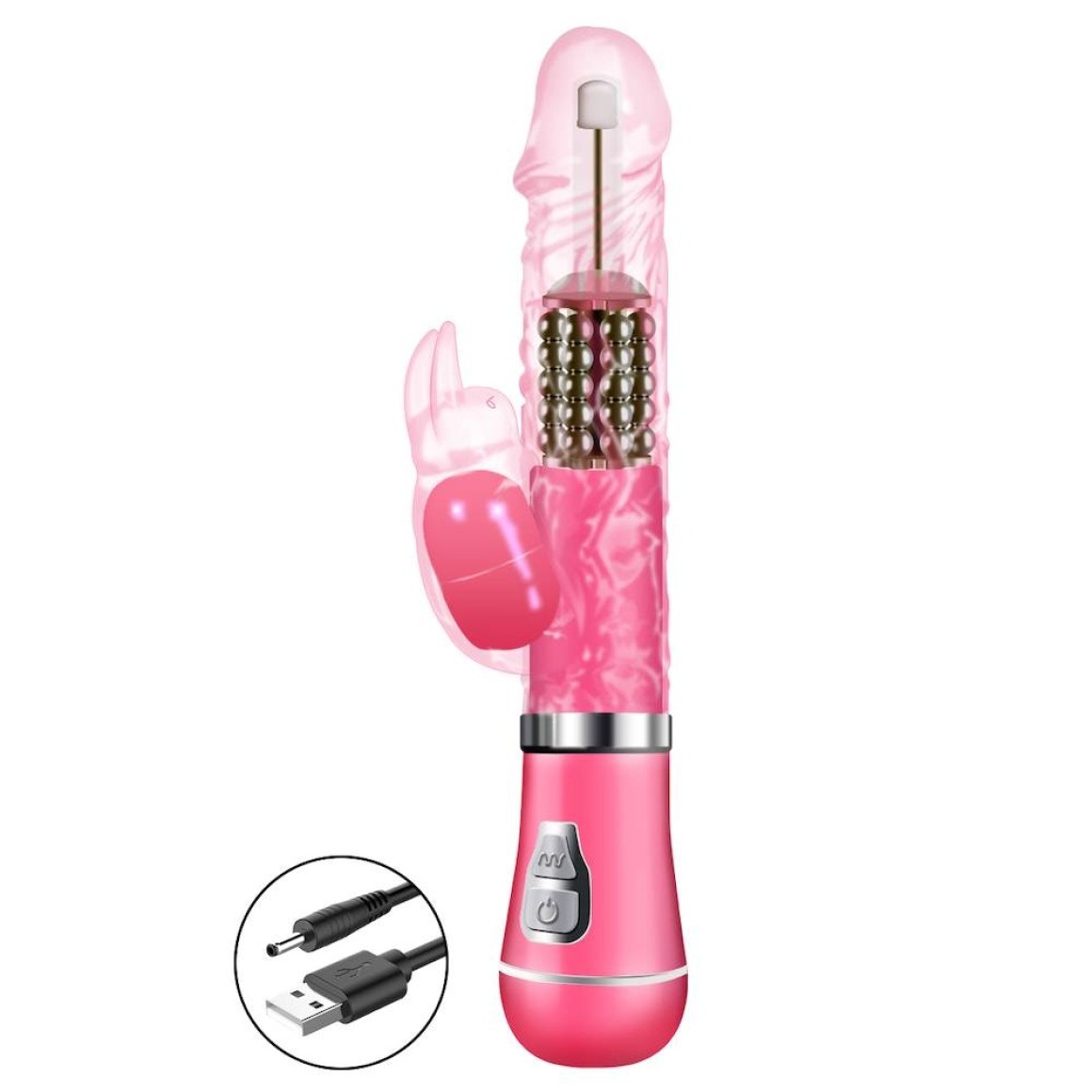 Tem a ponta com uma curva para a estimulação do ponto G, também possui um plug em sua lateral em formato de coelho para estimular o clitóris durante a penetração.