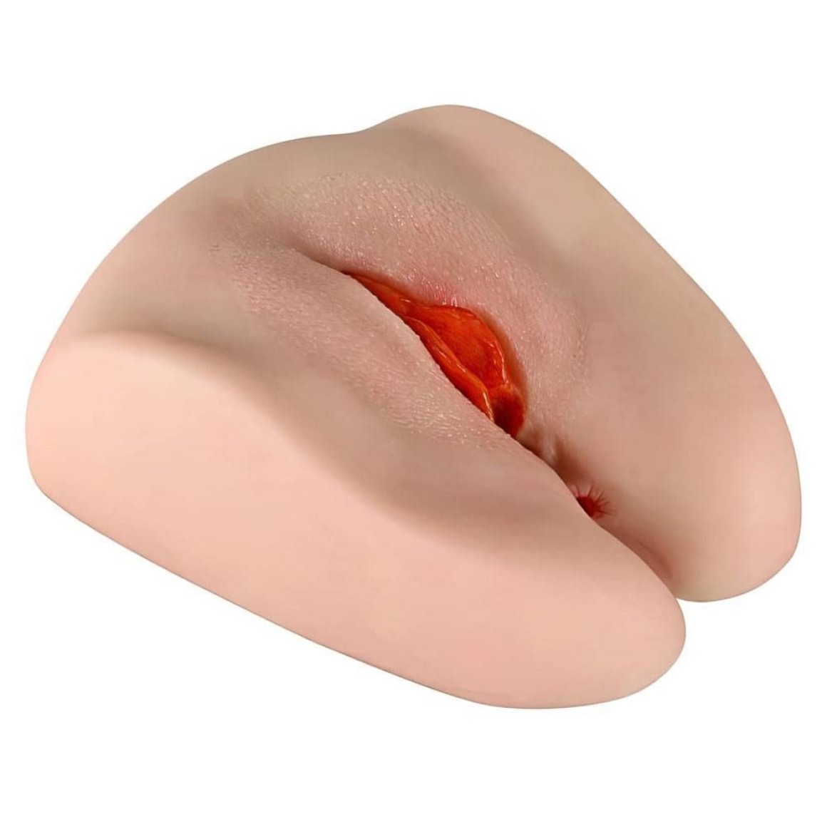 Masturbador Masculino Cyberskin em formato de Vagina e ânus, com textura na sua parte interna para maior estimulação durante o uso.