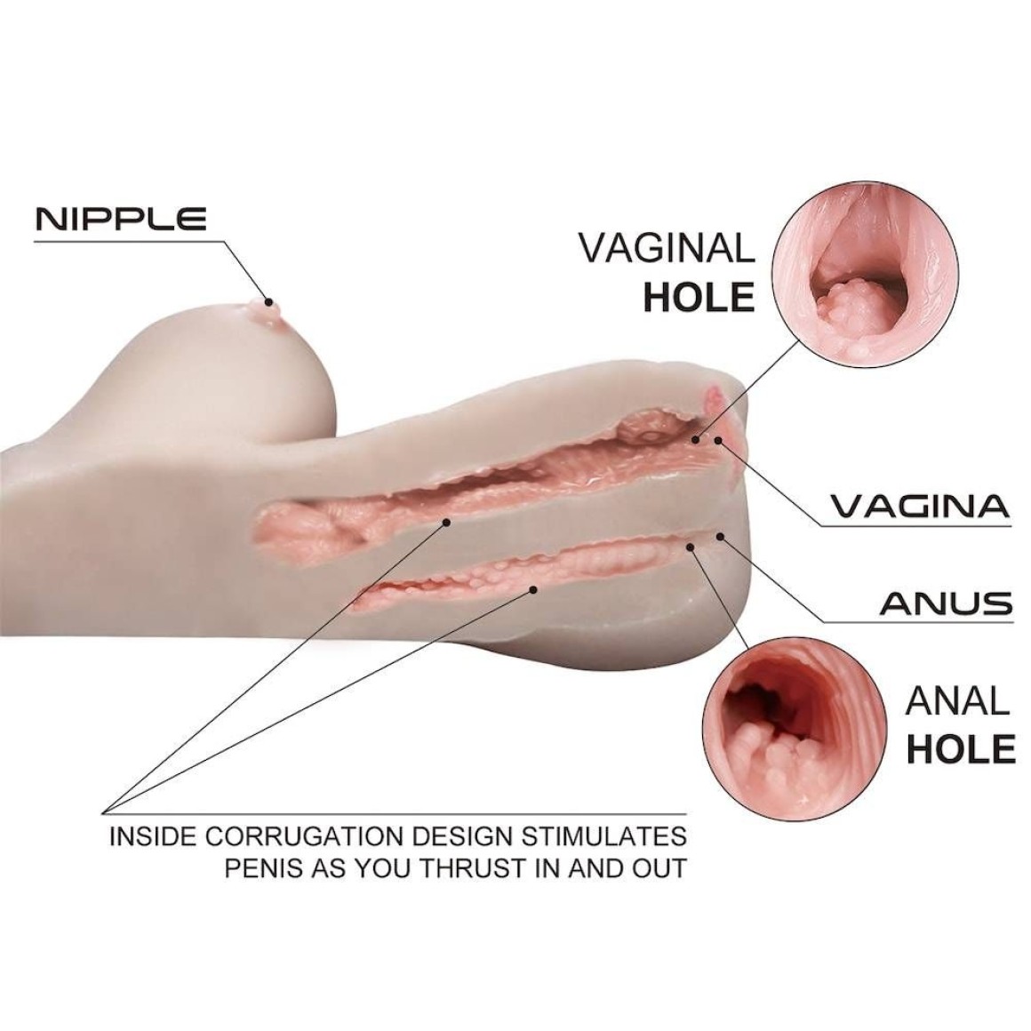 Este masturbador apresenta um design cuidadosamente esculpido, que reproduz fielmente as formas sedutoras de uma bunda e seios femininos.