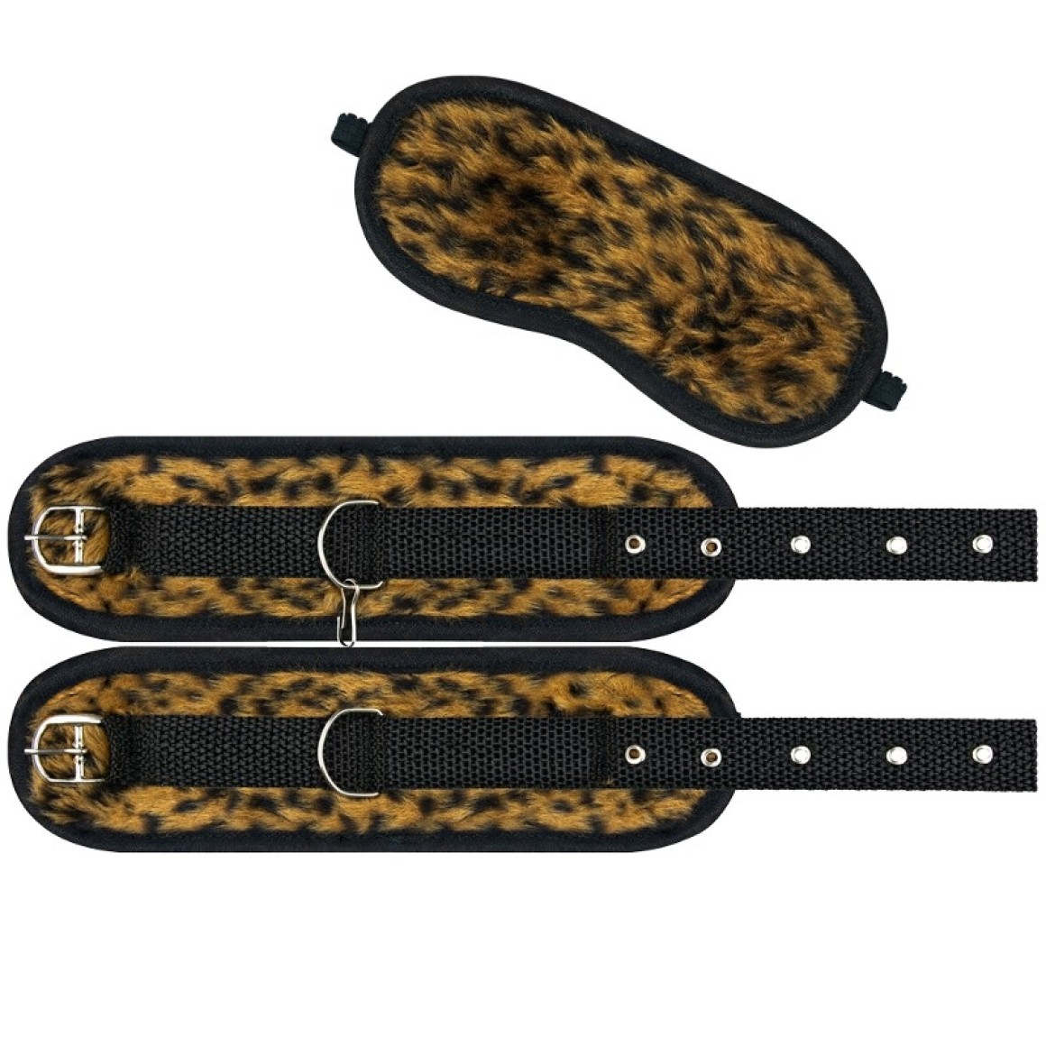 Kit composto por 2 peças, sendo 1 par de algemas e 1 venda.