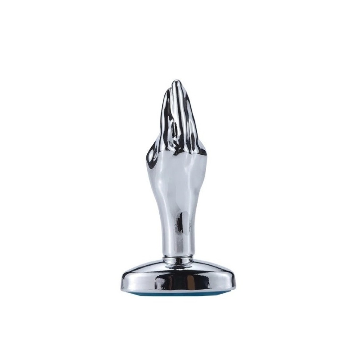 Plug anal de aço inoxidável com formato de mão com joia na base