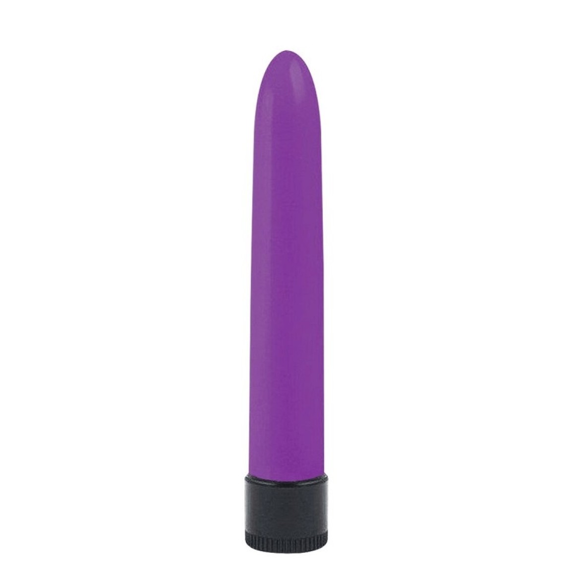 Vibrador personal 17 cm. Possui superfície lisa e um motor multivelocidade controlado a partir de um botão giratório em sua base.