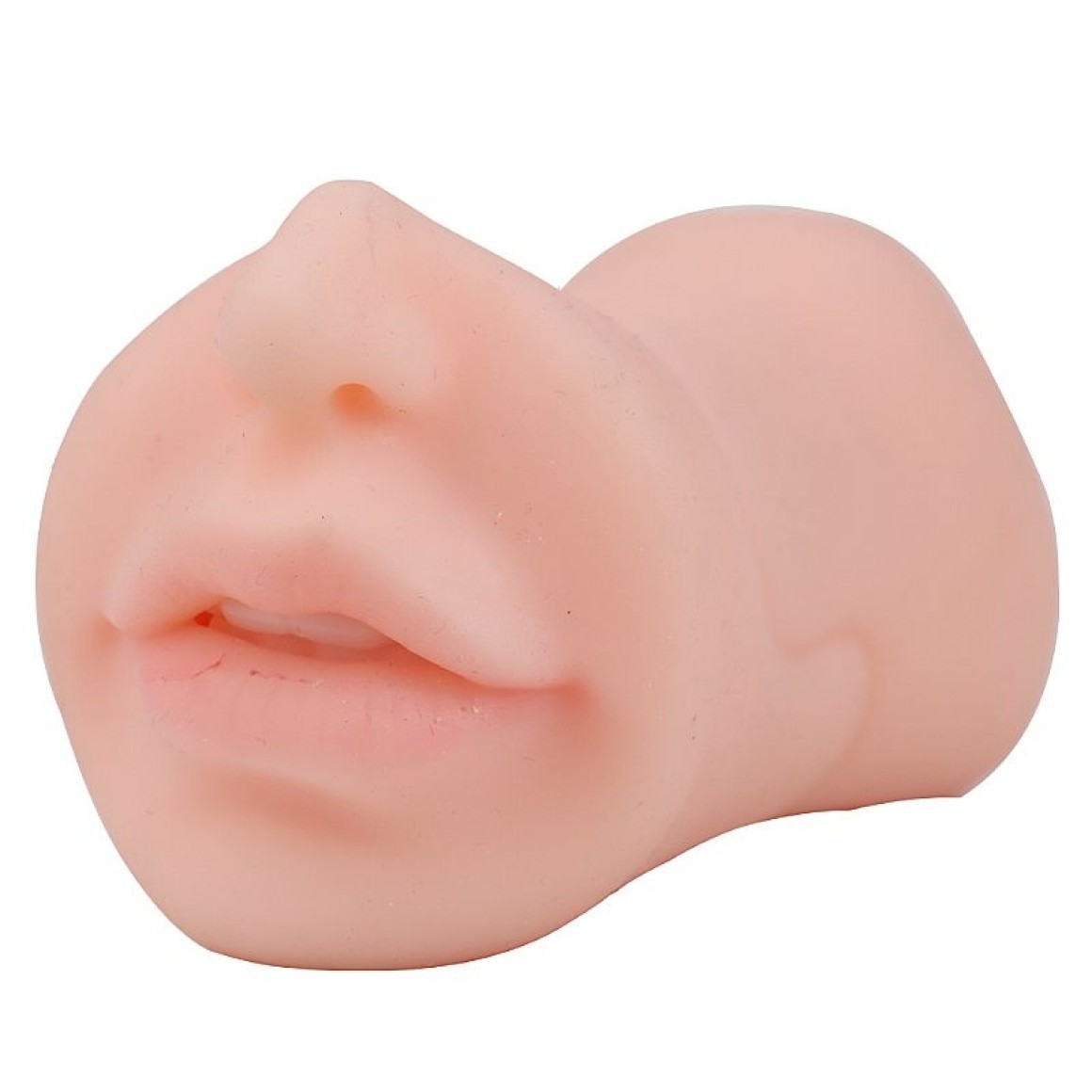 Masturbador Masculino Cyberskin em formato de vagina e uma boca com textura na sua parte interna para maior estimulação durante o uso, resistente à água.