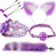 Kit fox composto por 1 tiara de renda e pelúcia + 1 plug anal com cauda em pelúcia + 1 grampo para seios em metal com presilhas ajustáveis com guizo na ponta + mordaça com bola em metal + Máscara de fantasia sensual com strass e flor.