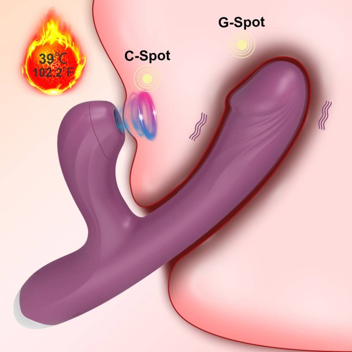 Vibrador ponto G e clitóris composto por silicone, material macio e com um toque aveludado.