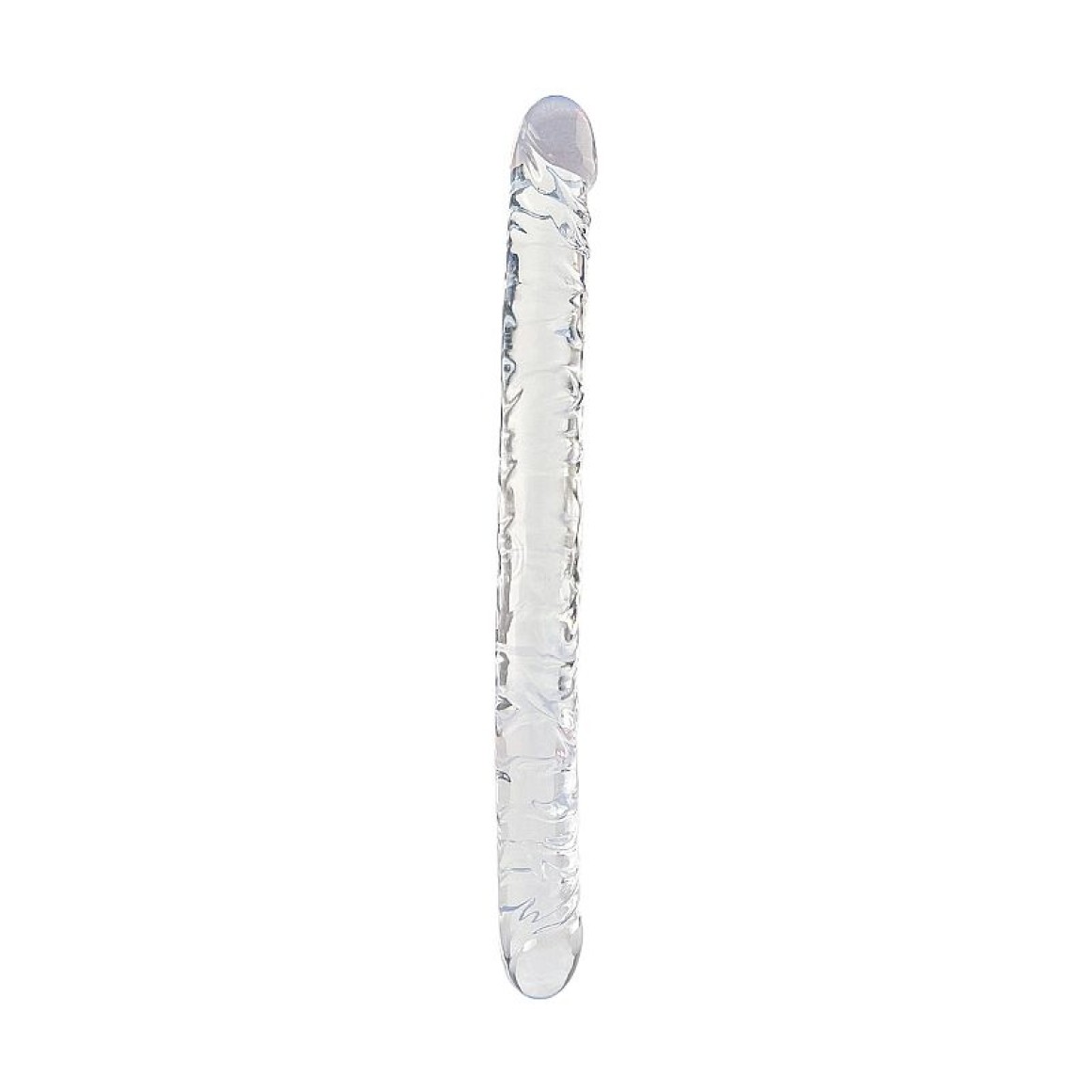 Pênis com duas pontas confeccionado em silicone possui glande definida, textura de veias,