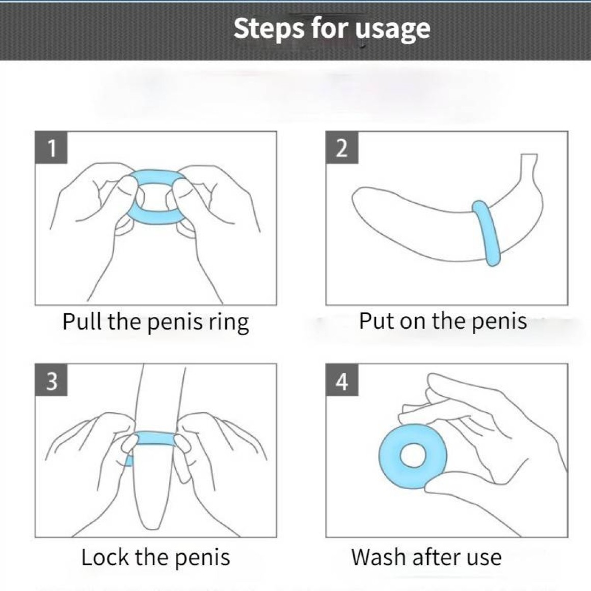 MODO DE USO: ABRA O ANEL COM OS DEDOS E COLOQUE NO CORPO DO PENIS QUANDO ESTIVER ERETO.