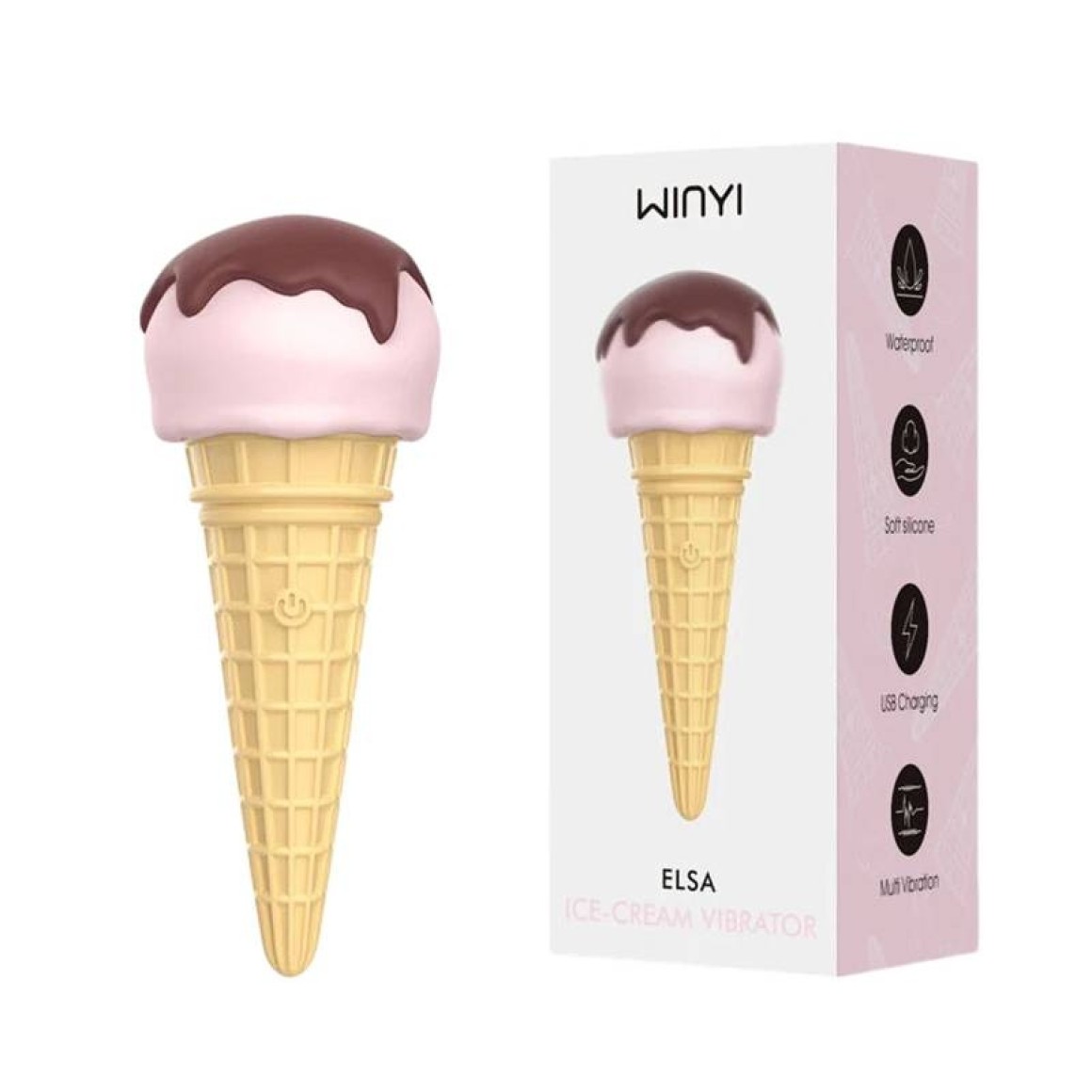 Vibrador recarregável formato sorvete. Possui 10 modos de vibração.