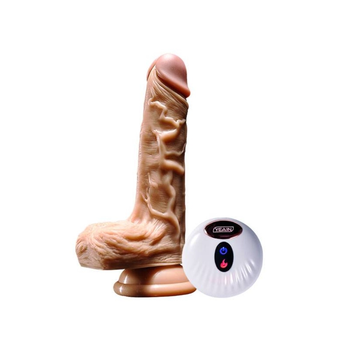 Prótese realística 18,5 cm recarregável com veias salientes, glande, escroto e ventosa.