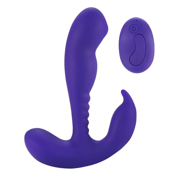 Estimulador de Próstata com controle remoto feito  em silicone cirúrgico com 2 motores e 10 níveis de vibrações com 5 modos de movimento no Ponto-P.