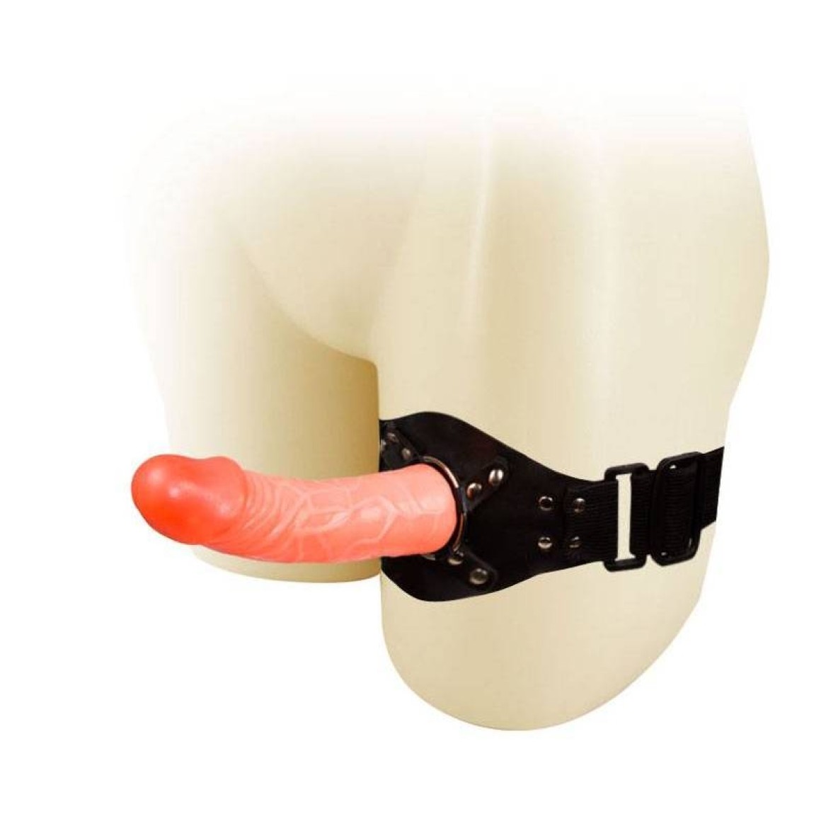Cinta peniana para coxa com pênis realístico e veias salientes.
