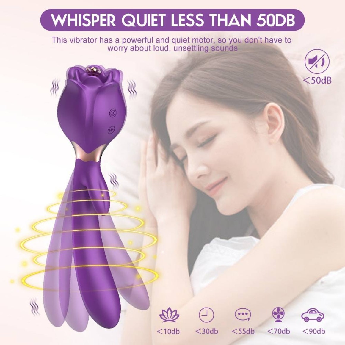 Em sua outra ponta, possui uma flor com 10 modos de vibração e acompanha duas pequenas pontas de silicone, para melhor estimulo.