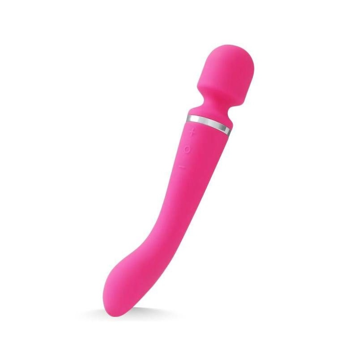 Massageador recarregável com dois pontos de vibração. Possui 10 modos de vibração.