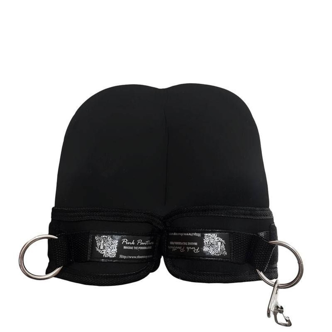 Luva restritora dupla com velcro para ajuste e fivelas que permitem prender com cadeado.