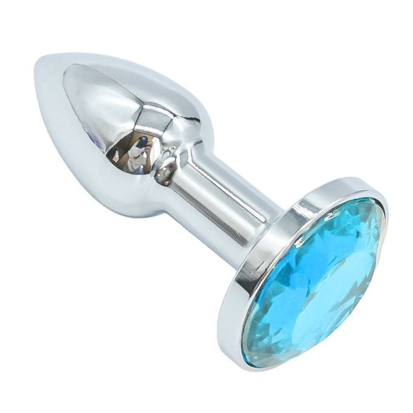 Plug anal de luxo em metal, com formato cônico, feito em alumínio fundido e polido a mão, possui em sua base uma pedra lapidada que lembra um diamante colorido.