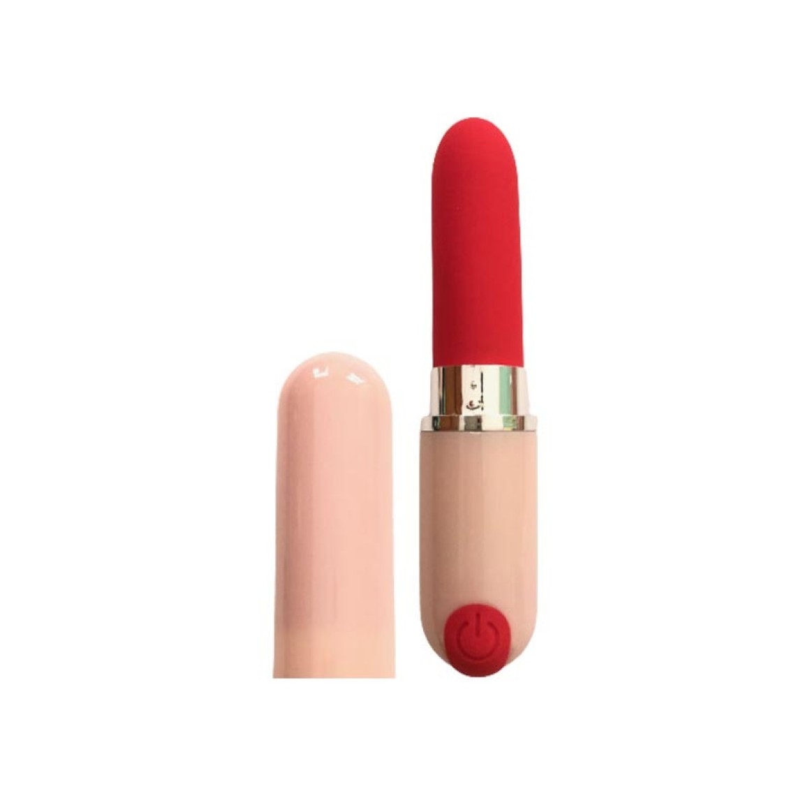 Vibrador recarregável formato batom, possui 10 modos de vibração.