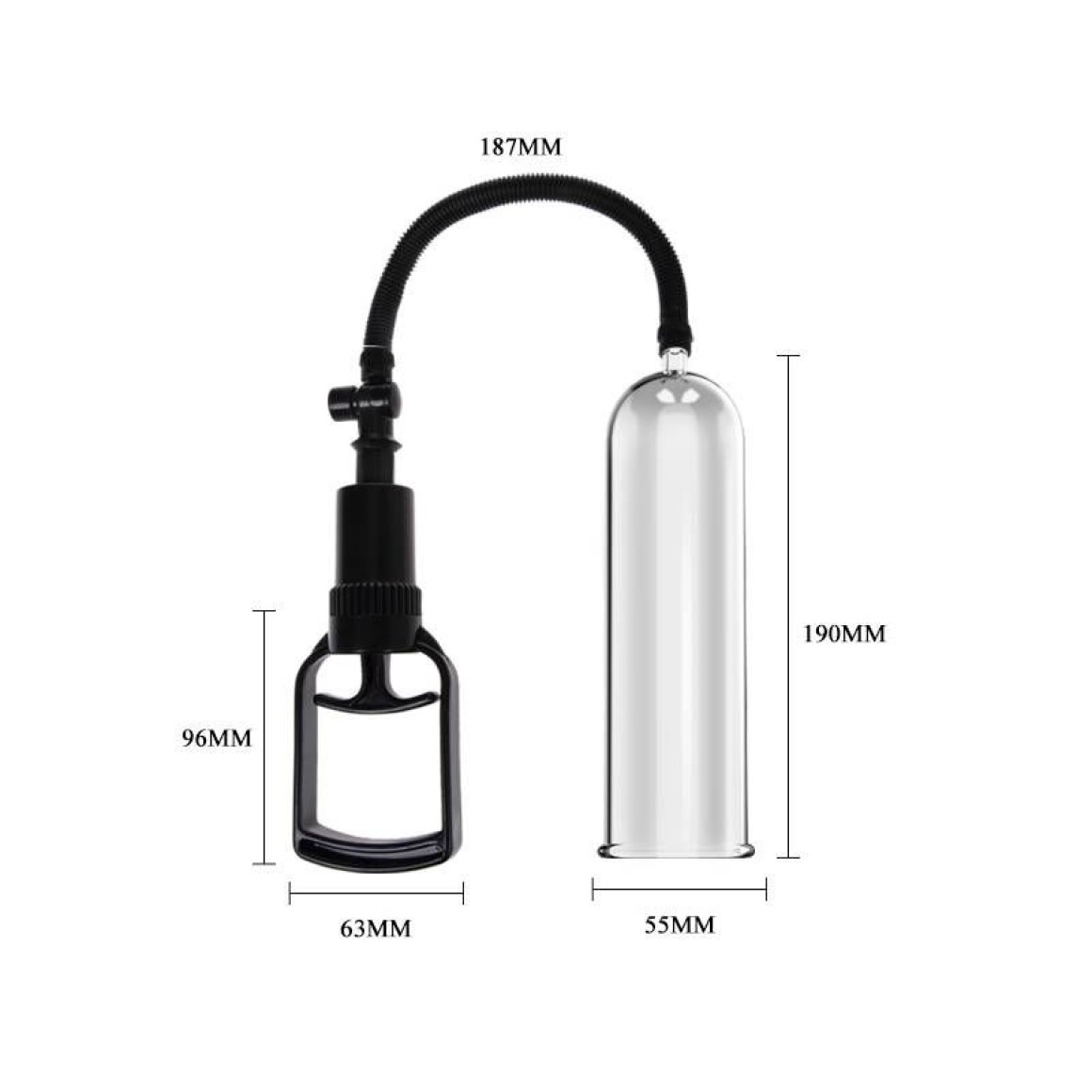 Bomba peniana manual com sistema de alavanca, possui 3 anéis de diferentes diâmetros e anel formato vagina.