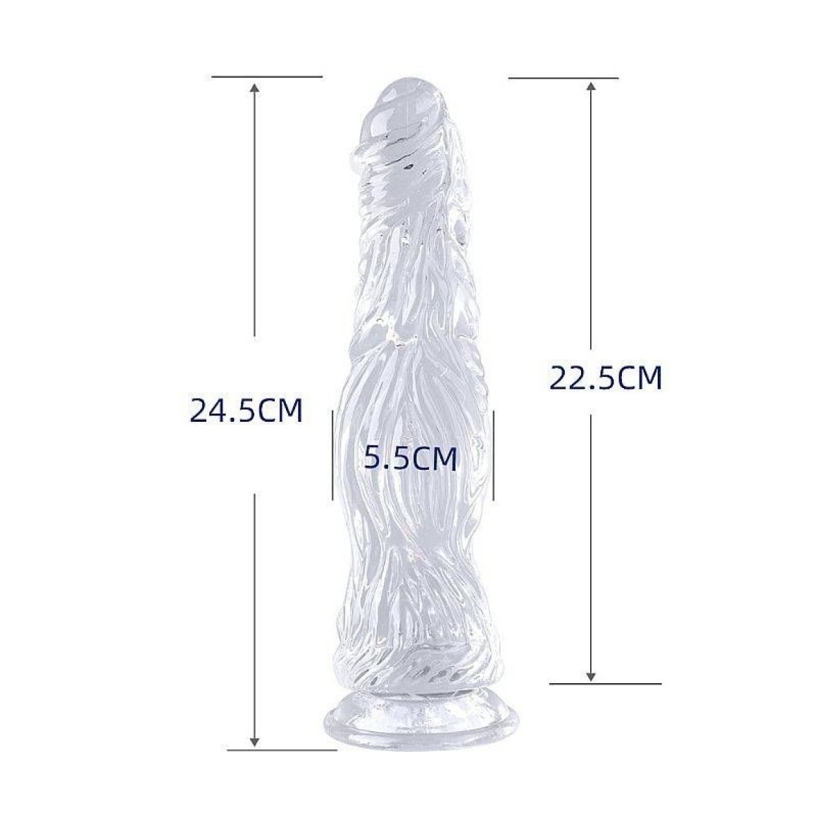 24,5 cm de comprimento total, ( 21,0 cm Penetráveis ) 5,5 diâmetro (medidas aproximadas).
