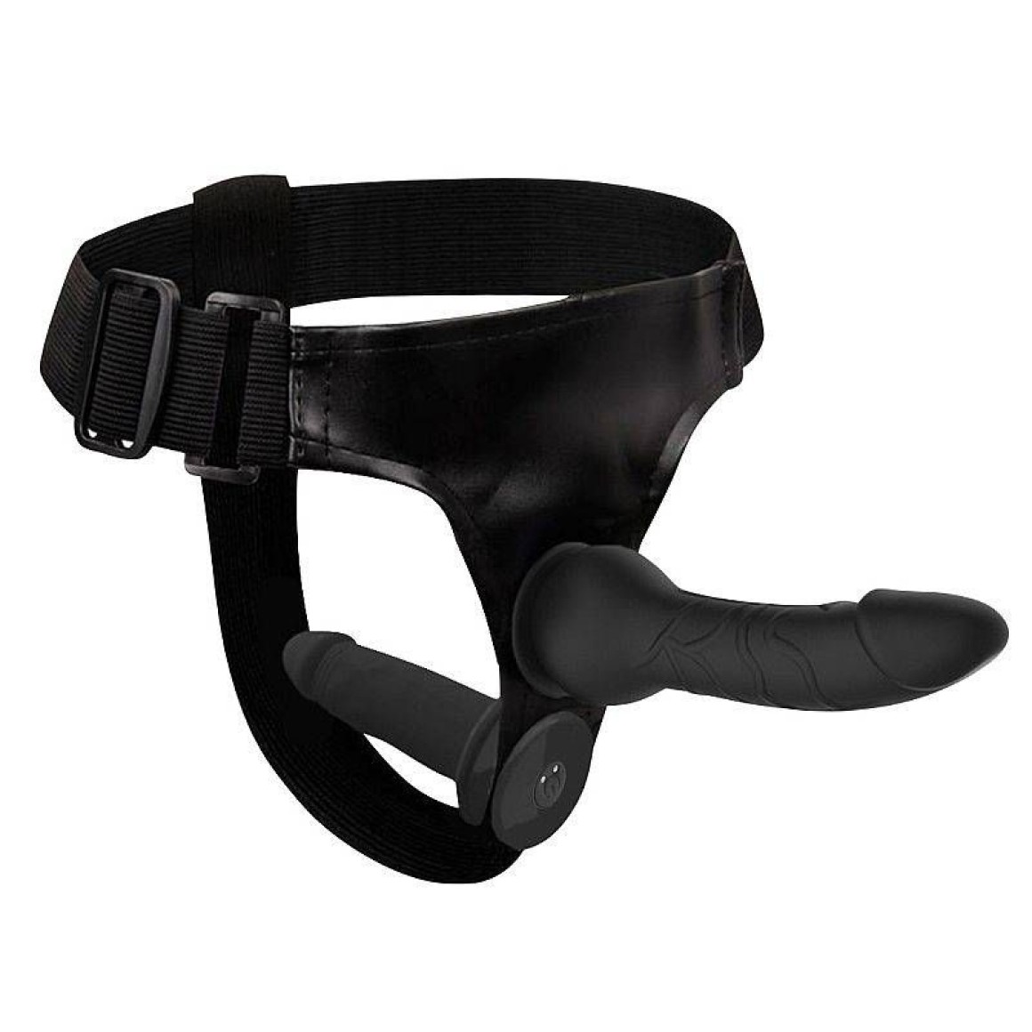 Cinta peniana com 2 dildo com formato de Pênis - cinta com alça elástica que se adapta a qualquer grossura de perna e quadril.