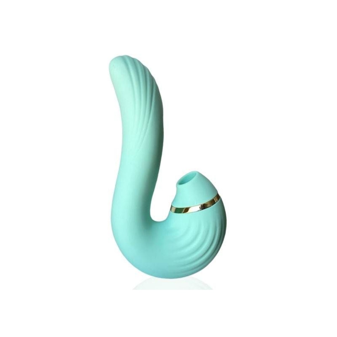 Vibrador recarregável ponto G com estimulador clitoriano.