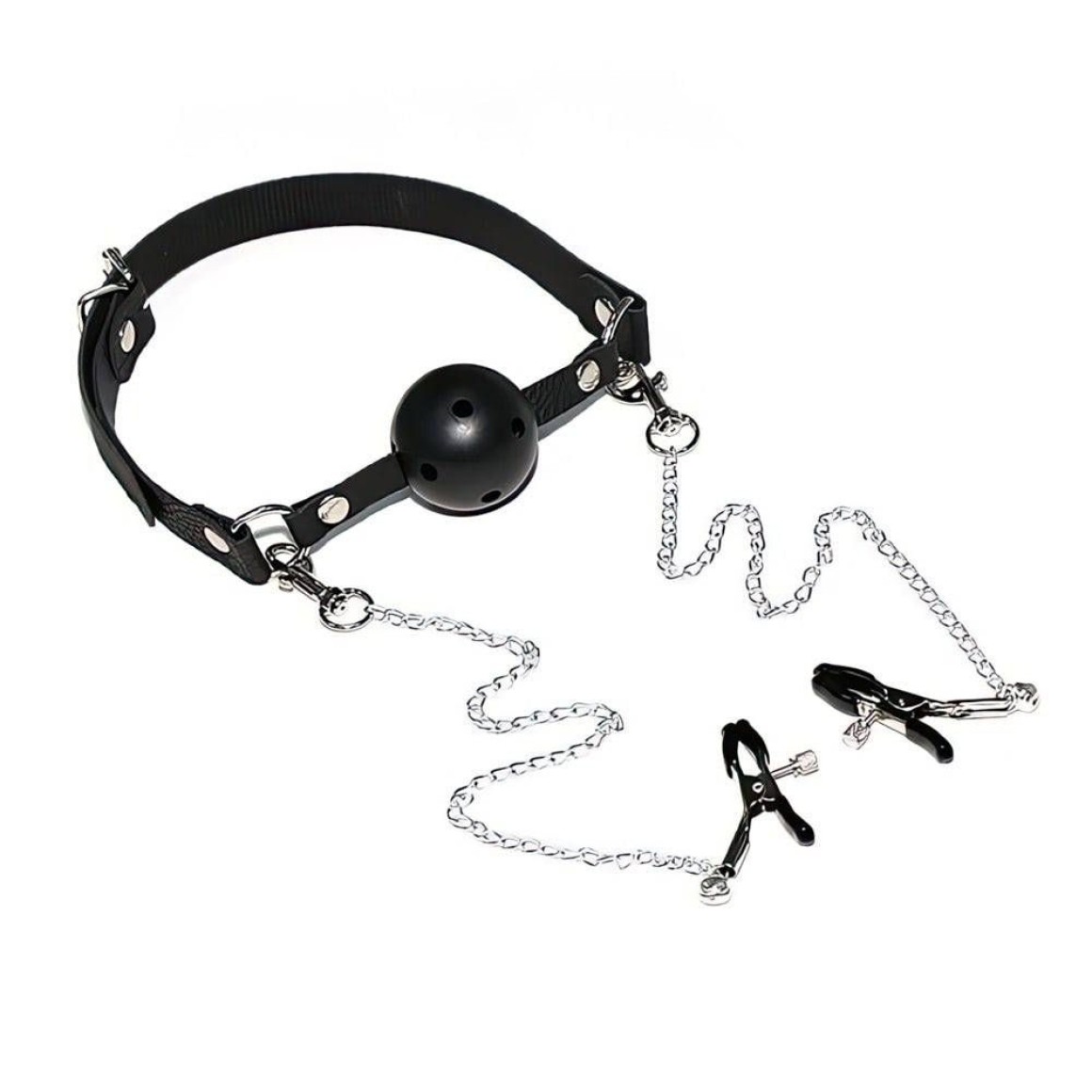 Mordaça sofisticada com esfera central arredondada e corrente de ligação metálica, ideal para quem deseja intensificar o jogo com estilo. Confeccionada em PU de alta qualidade, possui orifícios decorativos que garantem um visual moderno e ousado. Os fechos ajustáveis oferecem conforto, segurança e total controle.