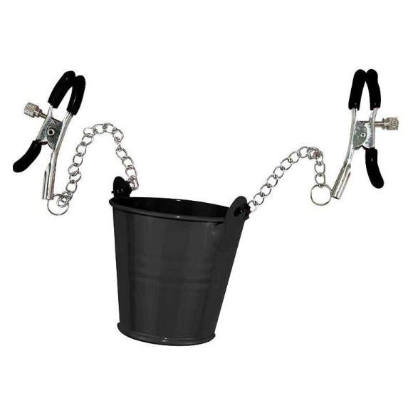 O prendedor de mamilos possui ajustes e guizo de metal.
