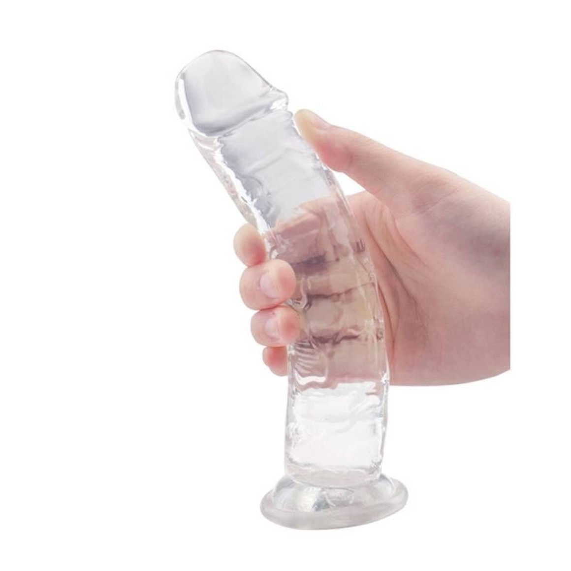 Pênis realístico com ventosa, possui glande e veias salientes. .