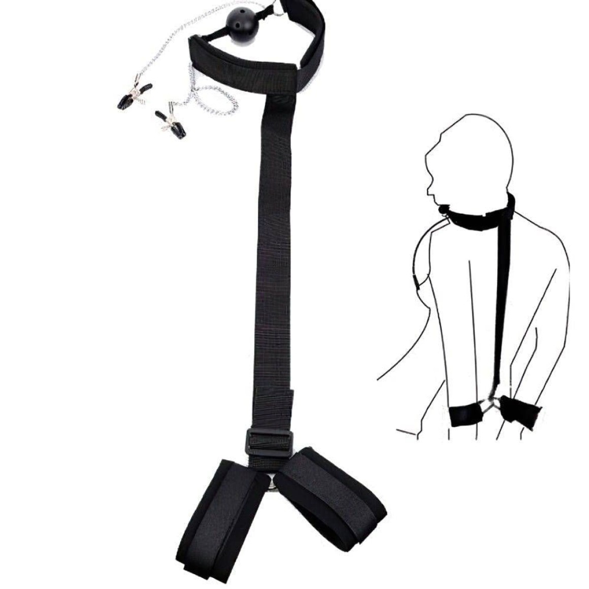 Este kit é composto por uma mordaça e um prendedor de mamilos, projetados para adicionar um toque de mistério e excitação aos seus momentos íntimos.