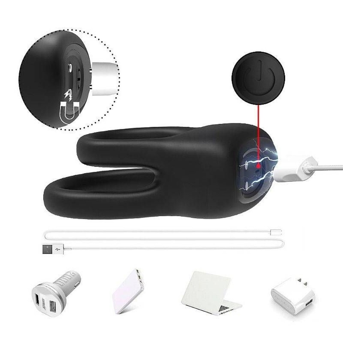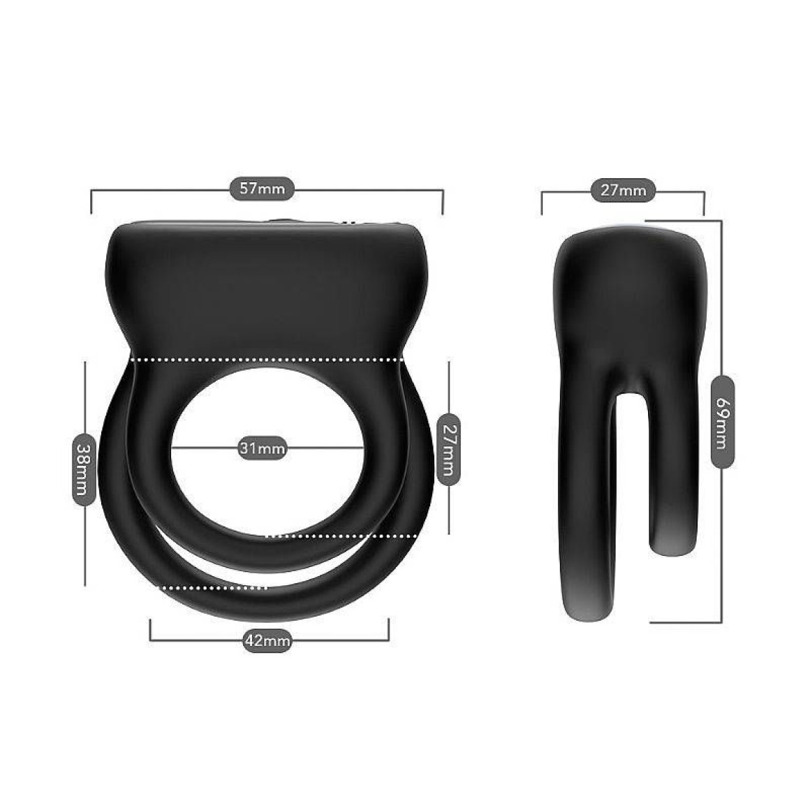 Anel Peniano duplo com estimulador de clitóris, fabricado em silicone, material macio e suave ao toque, com anel para escroto.