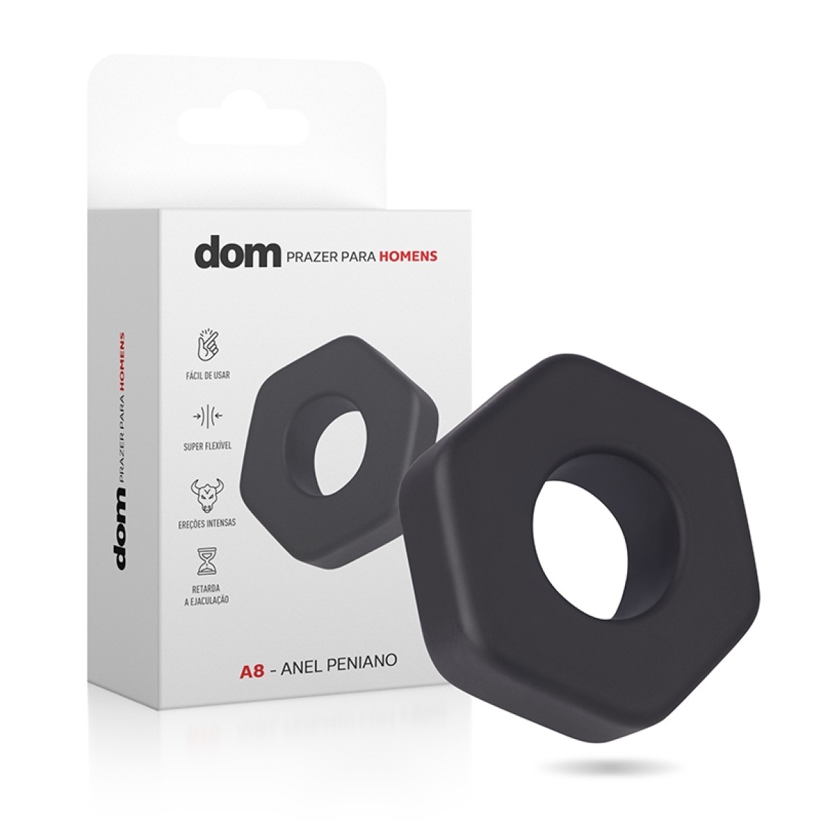 O A8 é um anel peniano ideal para homens que desejam manter uma ereção prolongada e aguentar por mais tempo uma maratona de sexo sem perder seu estilo. Este anel é feito de silicone macio e flexível, ele se ajusta facilmente à base de seu pênis e também pode ser usado para prender o escroto, mostrando assim sua versatilidade. Não deixe de experimentar