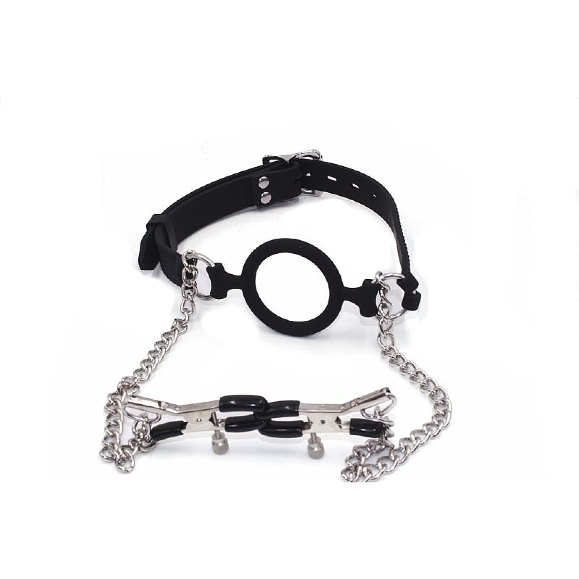 Silencie seu amante com esta luxuosa mordaça com grampos de mamilos. Se encaixa confortavelmente dentro da boca, enquanto a pulseira de couro macio é facilmente ajustada para caber todos os tamanhos.