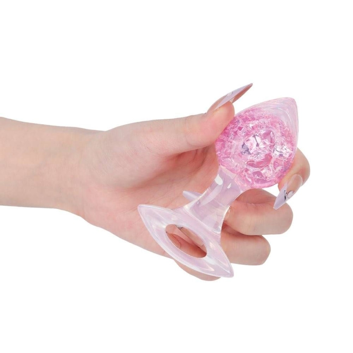 Plug Silicone Platina com Esfera de Vidro Interno e Alça - Coração - Tamanho M