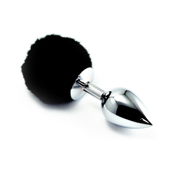 PLUG ANAL DE METAL 7CM POMPOM PEQUENO PRETO GUANG