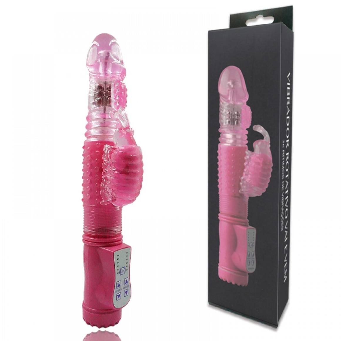 Vibrador rotativo vai e vem com estimulador clitoriano borboleta, com 36 variações de vibração, 6 velocidades de rotação e botão independente de giro reverso do corpo principal com 3 variações. Controles independentes para o movimento de vai e vem e para vibração do estimulador clitoriano, permitindo o uso de velocidades diferentes em cada estimulador ao mesmo tempo.