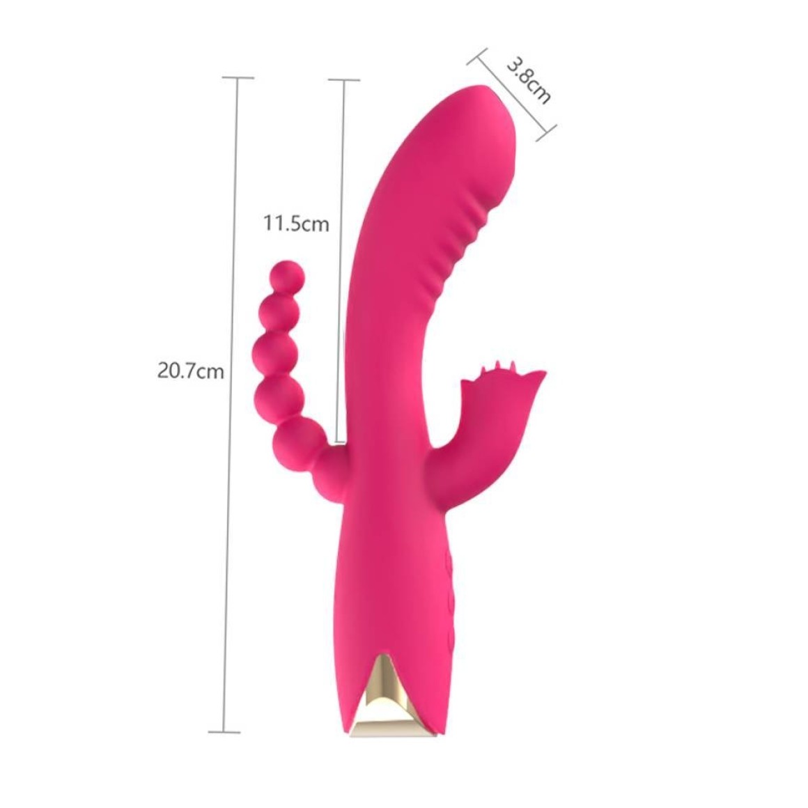 Vibrador de Ponto G e Clitóris com plug anal.Utiliza vibração como forma de estímulo, fazendo você sentir novas sensações. Possui 10 modos de vibração e estimulação, 4 níveis de velocidade.Seu toque é aveludado e macio, proporcionando assim a mulher muita mais conforto na hora da penetração. Recarregável, acompanha cabo USB. Medidas:20.7x3,8cm.Penetráveis: 10,7 cm.