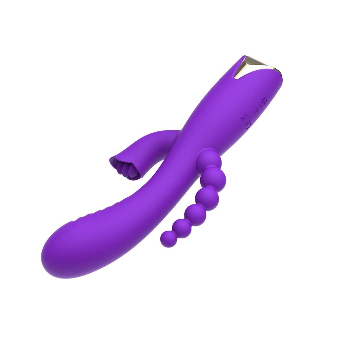 Vibrador de Ponto G e Clitóris com plug anal.Utiliza vibração como forma de estímulo, fazendo você sentir novas sensações. Possui 10 modos de vibração e estimulação, 4 níveis de velocidade.Seu toque é aveludado e macio, proporcionando assim a mulher muita mais conforto na hora da penetração. Recarregável, acompanha cabo USB. Medidas:20.7x3,8cm.Penetráveis: 10,7 cm.