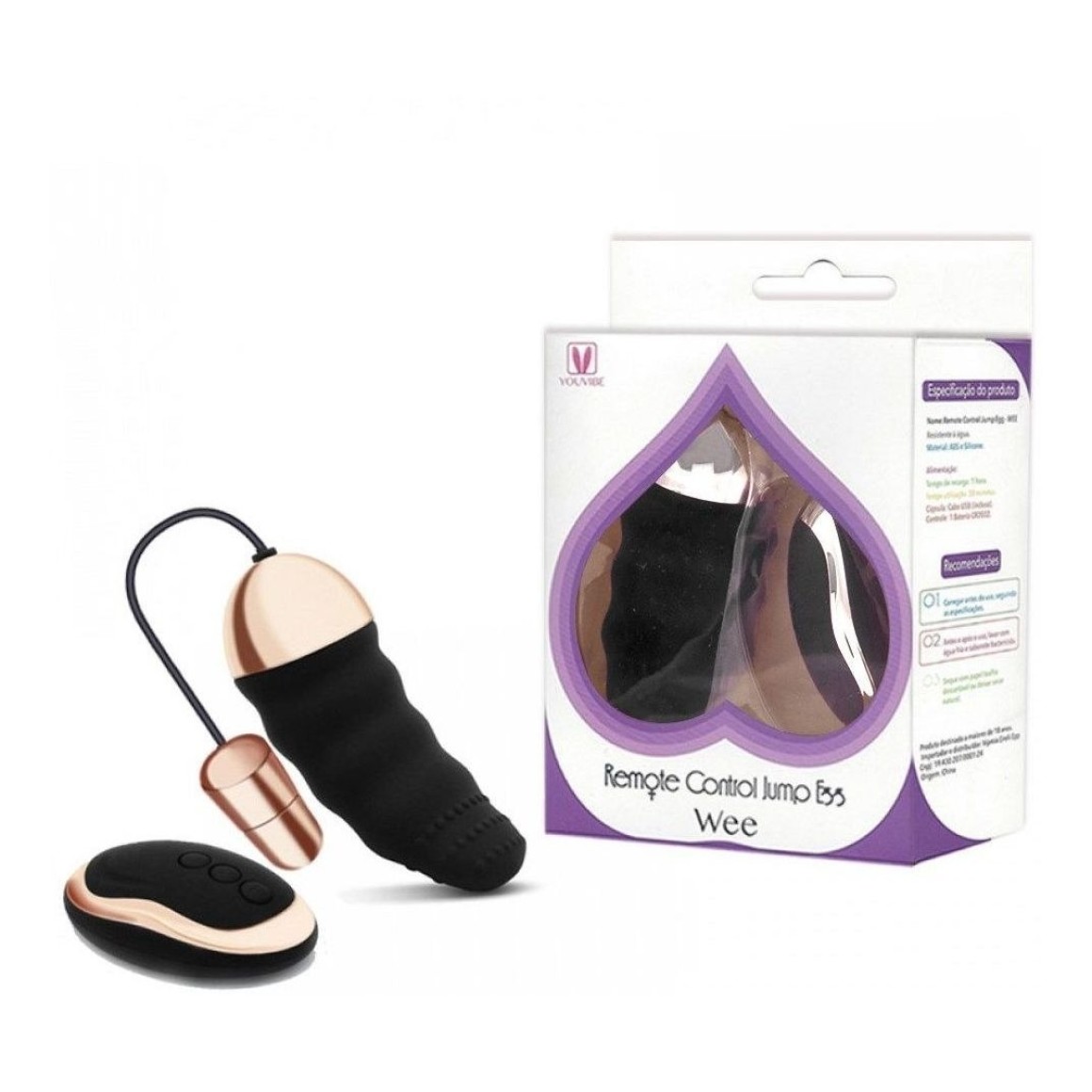 Possui 10 funções de vibração. A cápsula possui bateria interna recarregável via USB, já o controle utiliza pilhas.