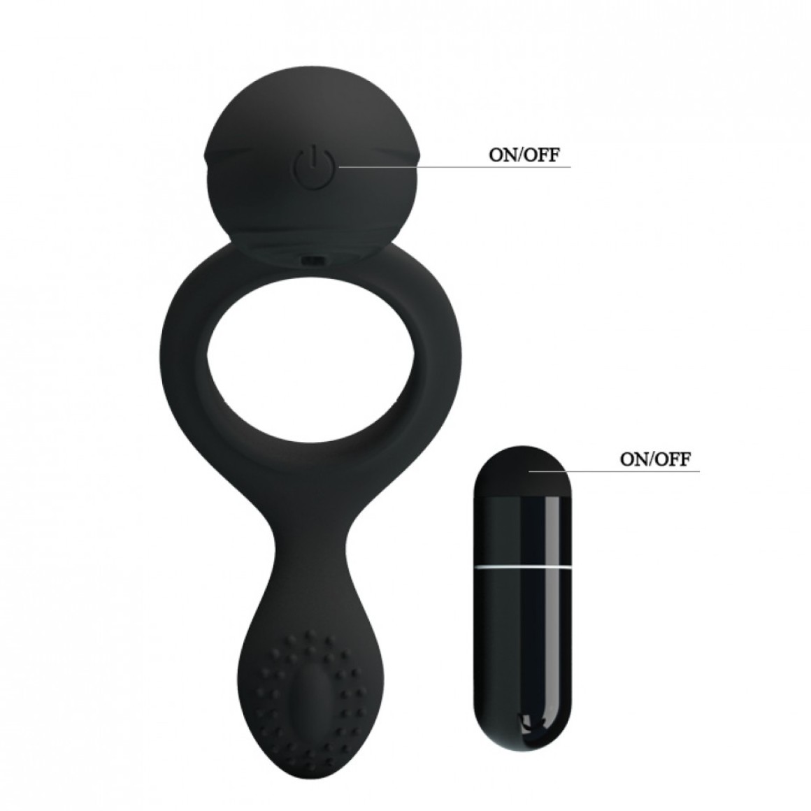 Anel peniano com vibrador e estimulador de clitóris feitos de silicone, material macio com toque aveludado. A parte superior do anel possui uma saliência parecida com uma língua que estimula a vagina durante a penetração. Dentro da parte superior há um compartimento que abriga uma cápsula vibratória com que vibra conforme é pressionado ao corpo.