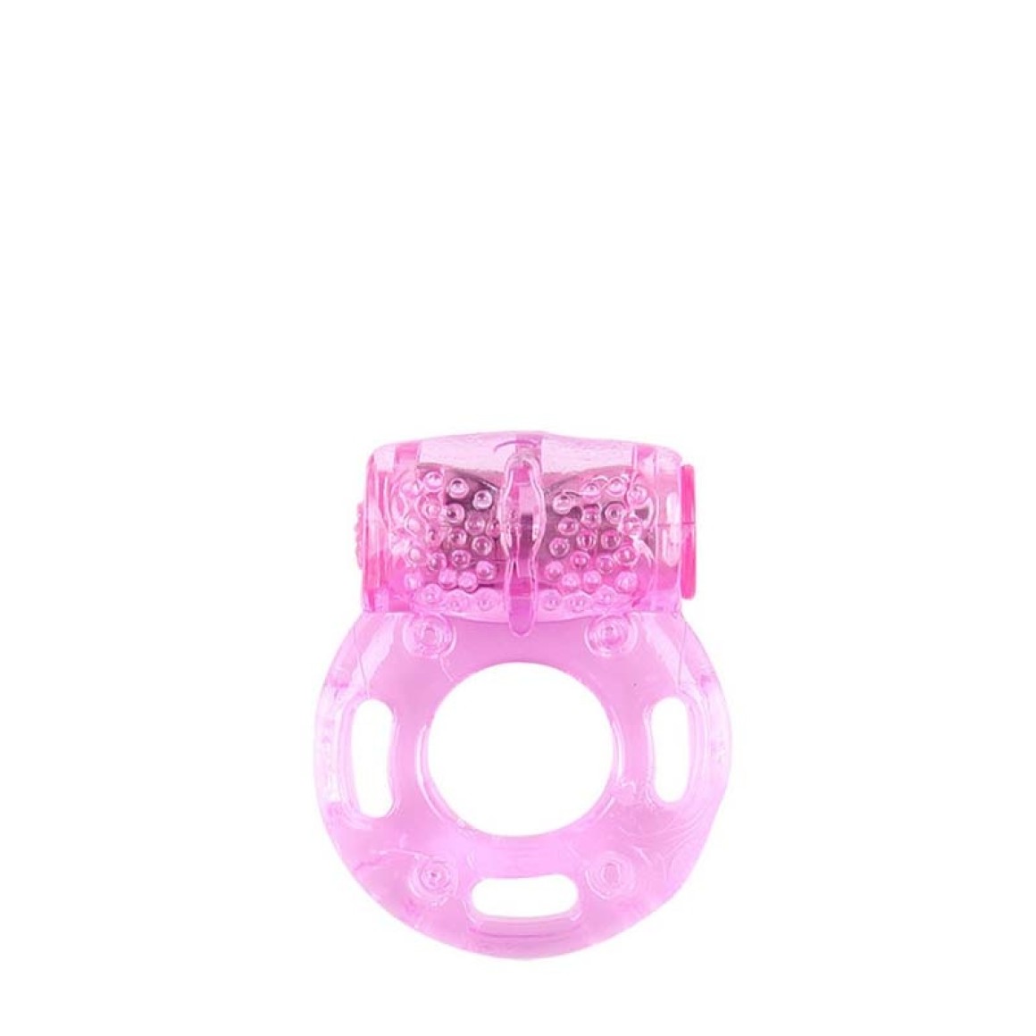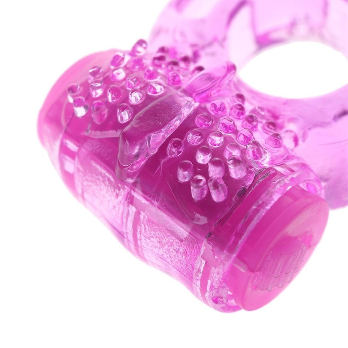 Anel peniano com cápsula vibratória e saliências massageadoras em formato de borboleta.