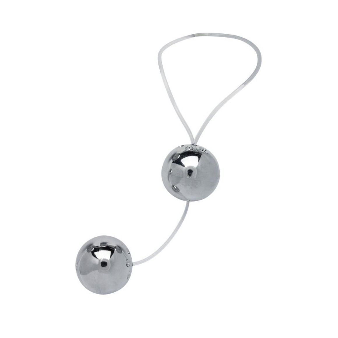 Esferas ligadas por um cordão de silicone, desenvolvidas para a prática do Pompoarismo e ginástica pélvica.