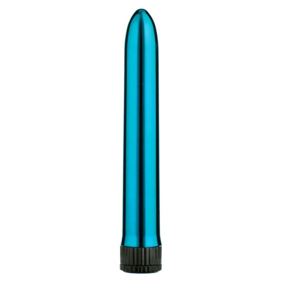 Vibrador personal 17 cm. Possui superfície Lisa Metalizado e um motor multivelocidade controlado a partir de um botão giratório em sua base. Pode ser usado com capas penianas e como vibrador anal.