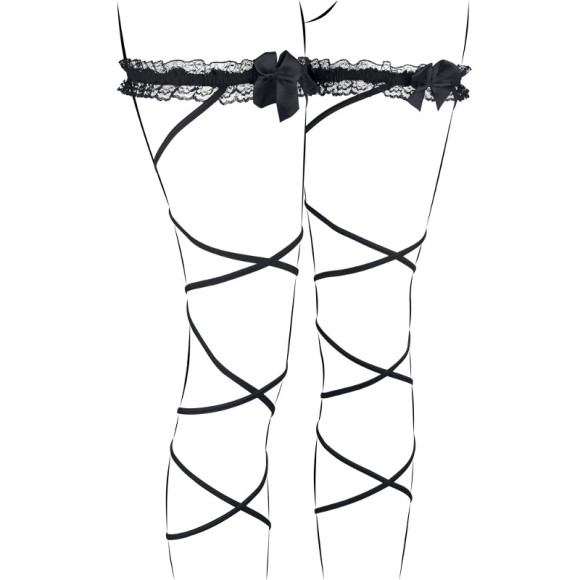 Confeccionada em cetim com persex e renda, com tiras para trançar nas pernas e lacinho.