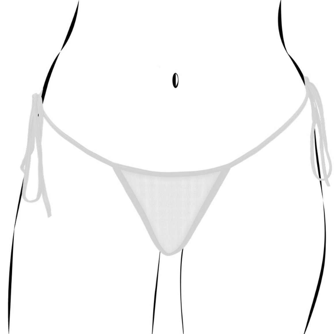 Calcinha em tule de malha, acabamento em viés e regulagem de amarração lateral.